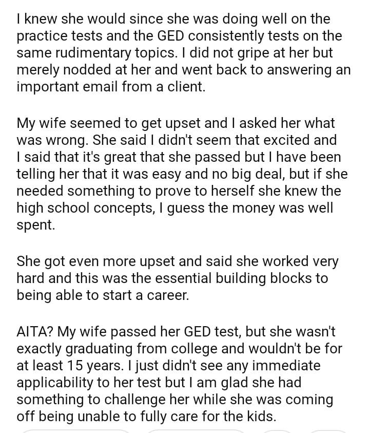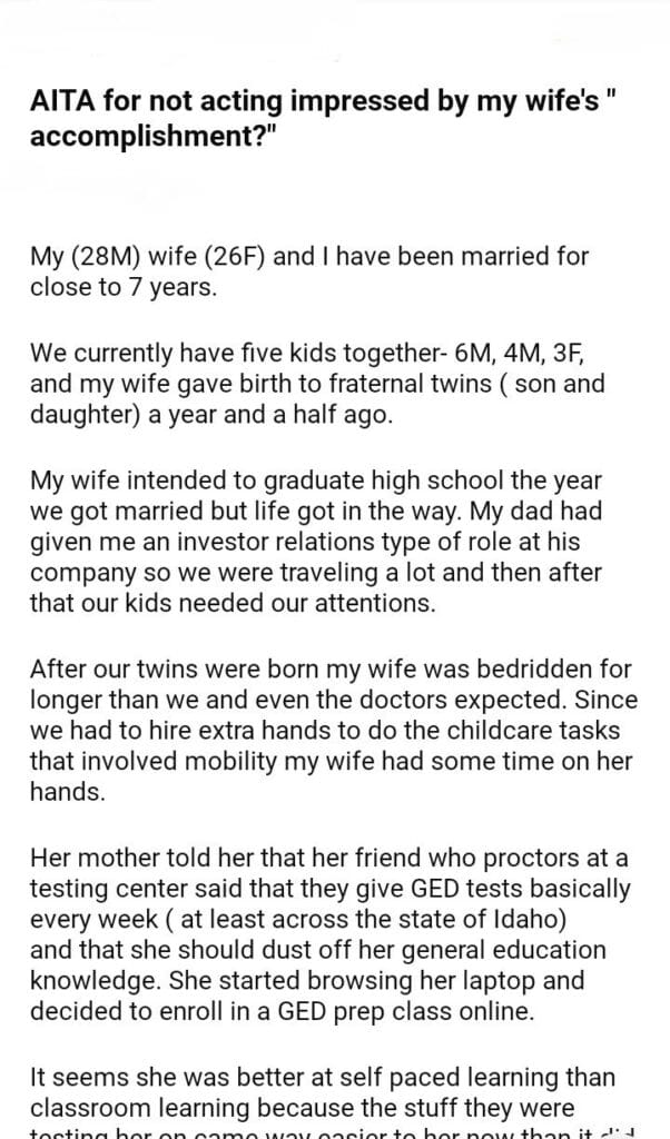 AITA for not acting impressed by my wife’s ” accomplishment?”