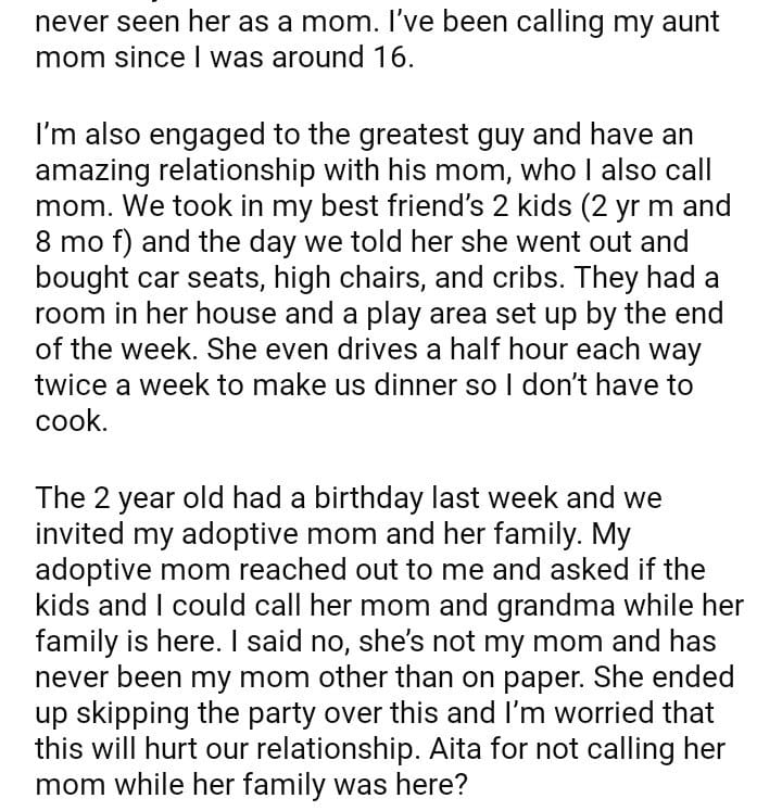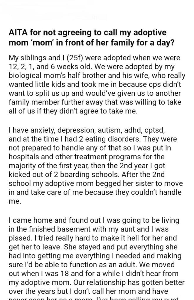 AITA for not agreeing to call my adoptive mom ‘mom’