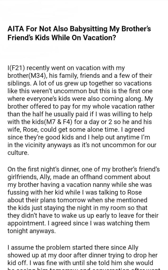 AITA For Not Also Babysitting My Brother’s Friend’s Kids