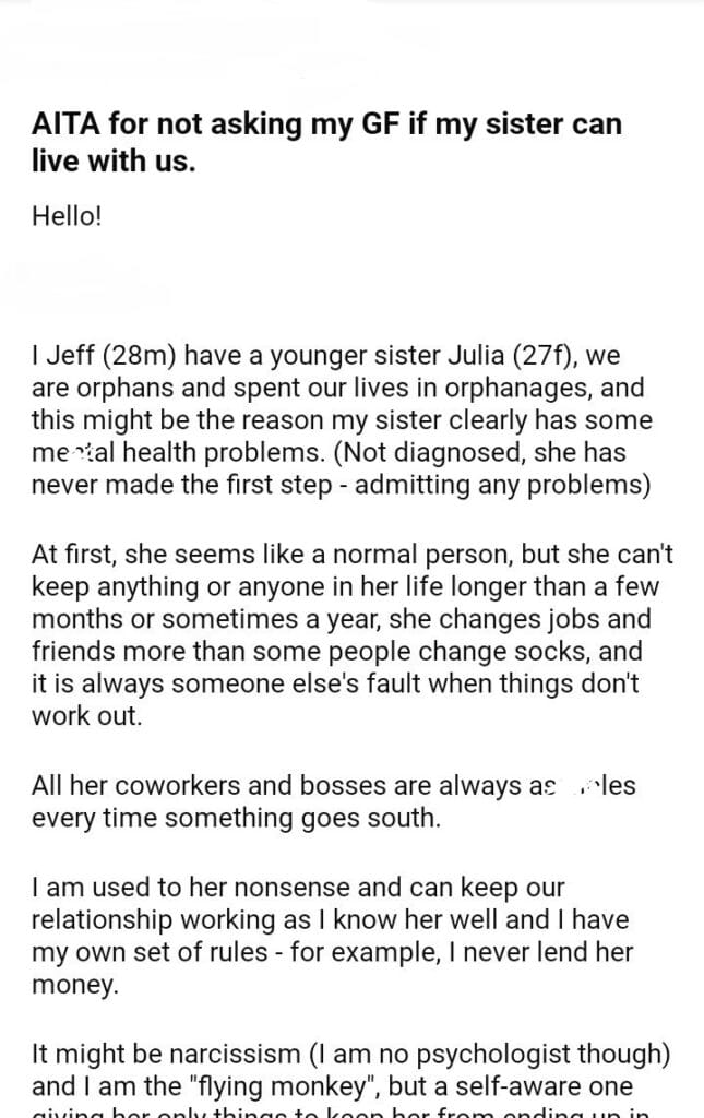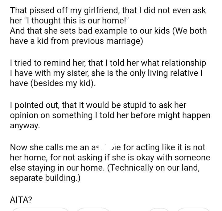 AITA for not asking my GF if my sister can live with us.