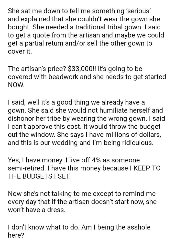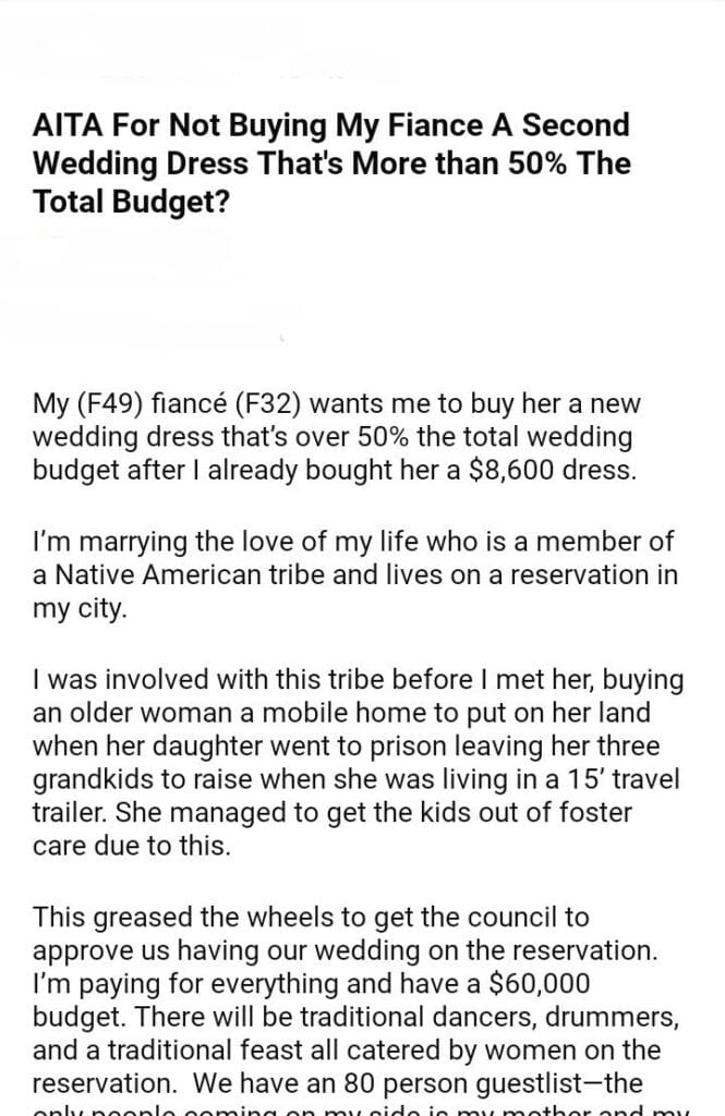 AITA For Not Buying My Fiance A Second Wedding Dress