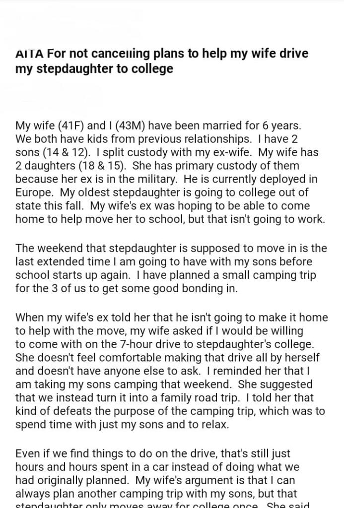 AITA For not cancelling plans to help my wife