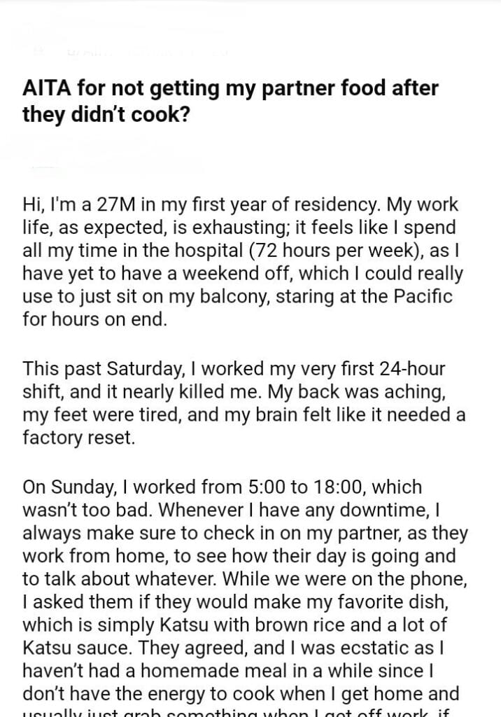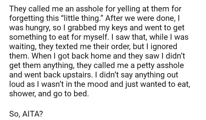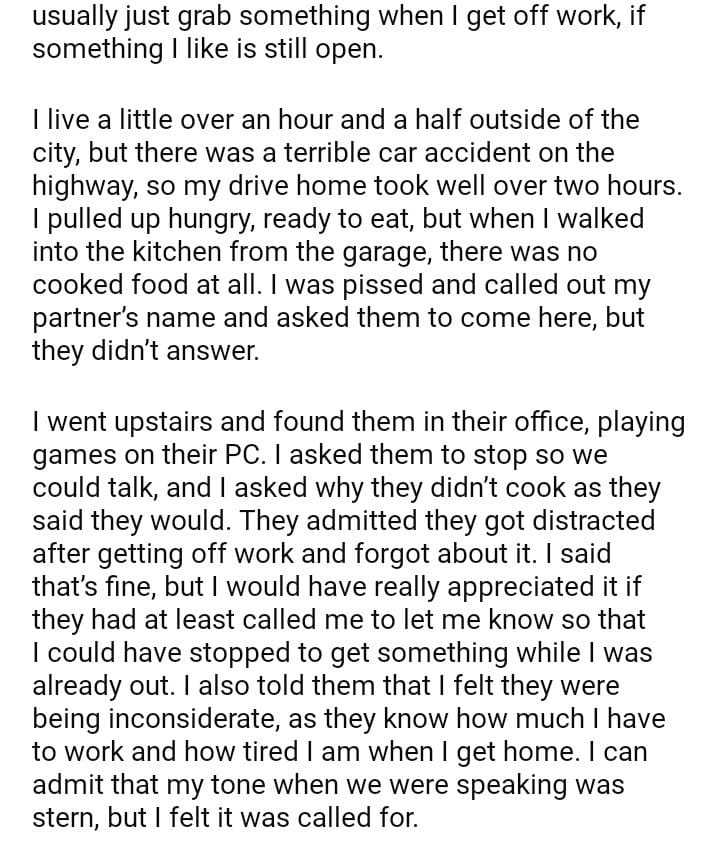 AITA for not getting my partner food after they didn’t cook?