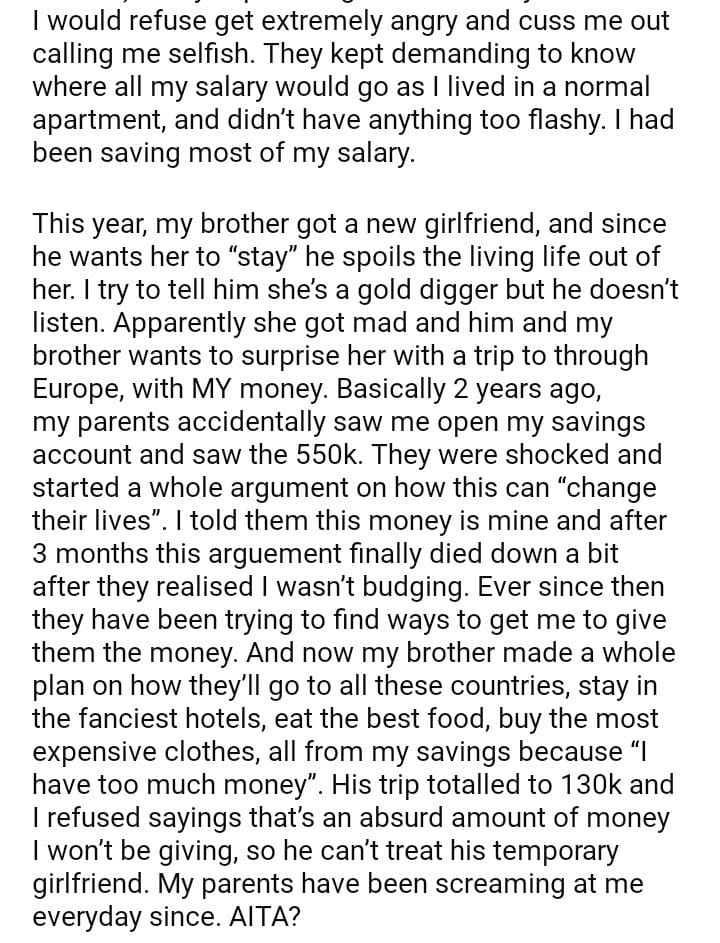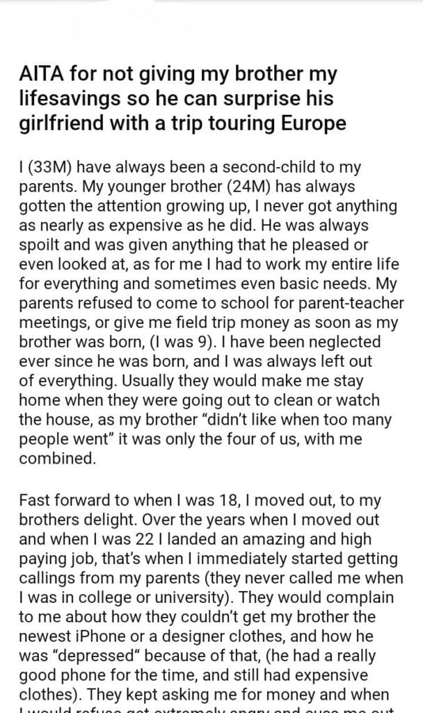 AITA for not giving my brother my lifesavings