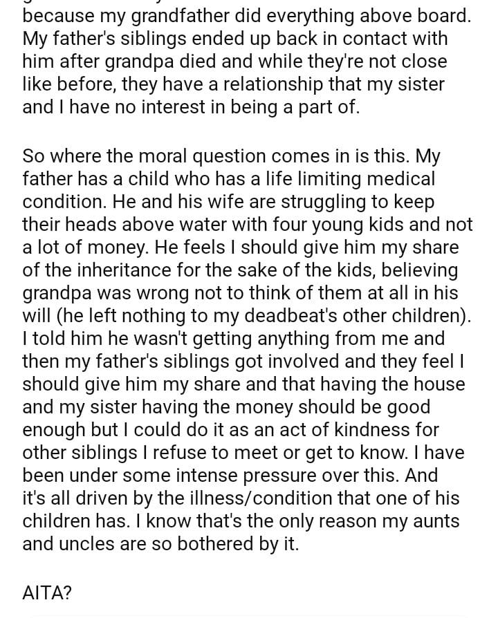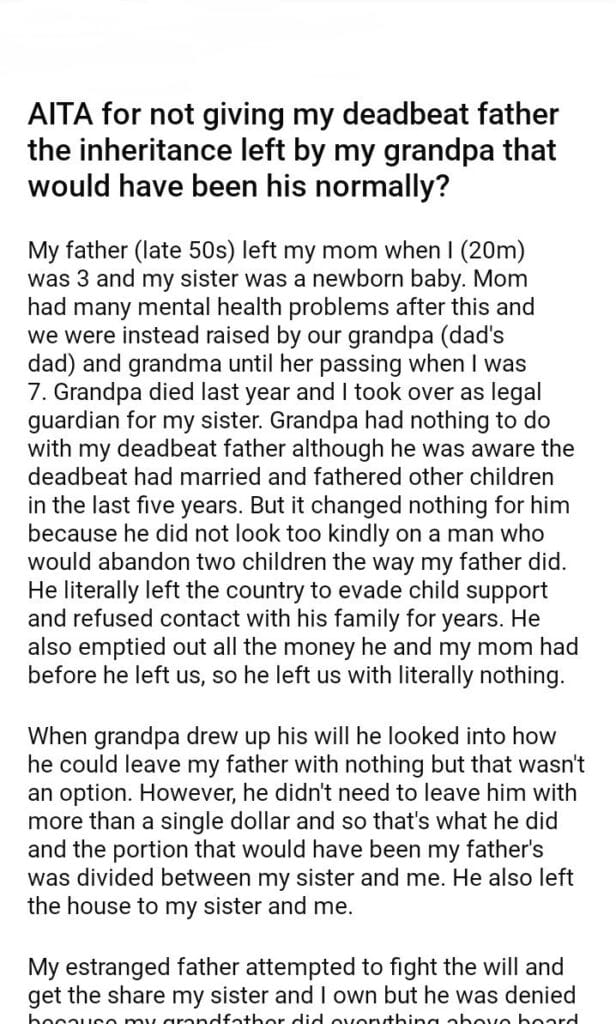 AITA for not giving my father the inheritance left by my grandpa that would have been his normally?