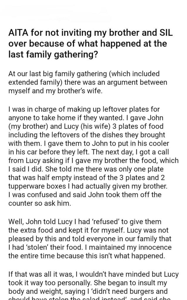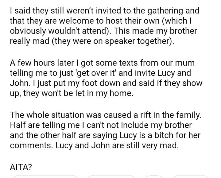 AITA for not inviting my brother and SIL over