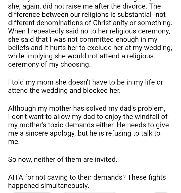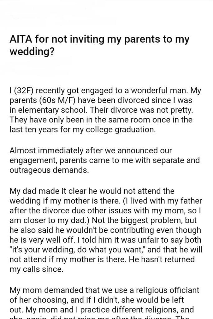 AITA for not inviting my parents to my wedding?
