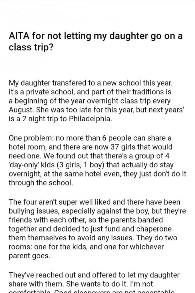 AITA for not letting my daughter go on a class trip?