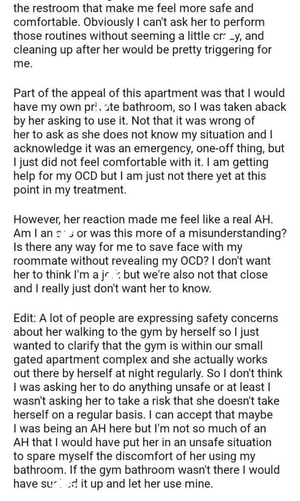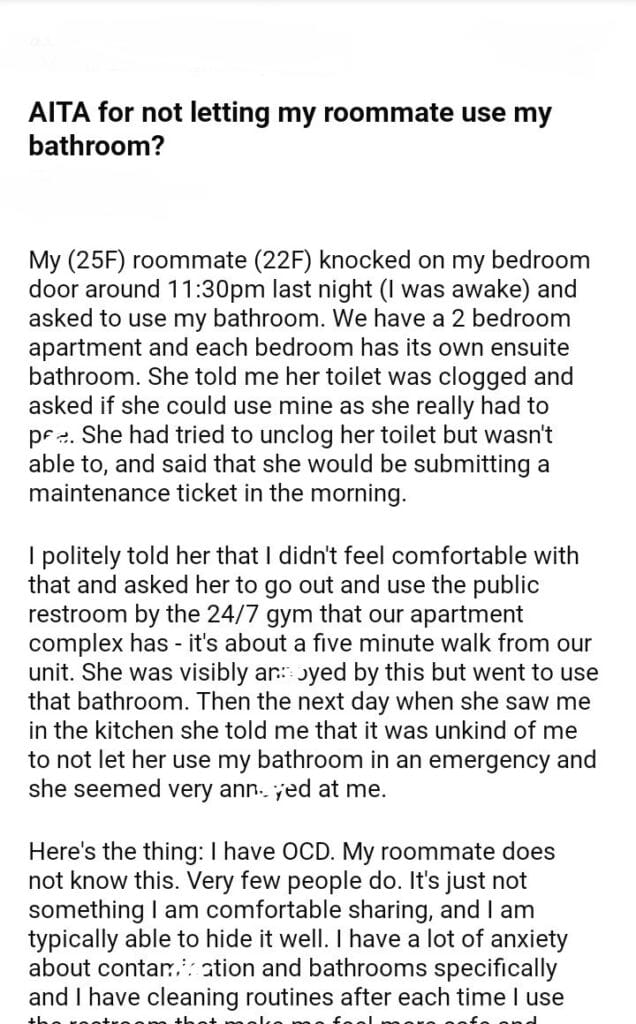 AITA for not letting my roommate use my bathroom?