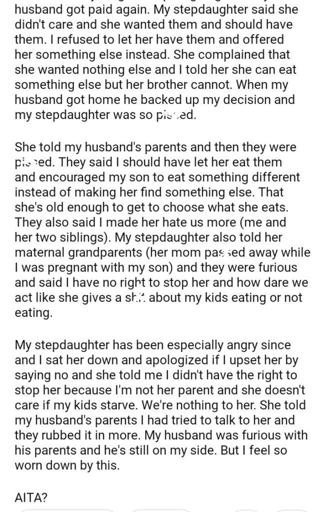 AITA for not letting my stepdaughter eat the last