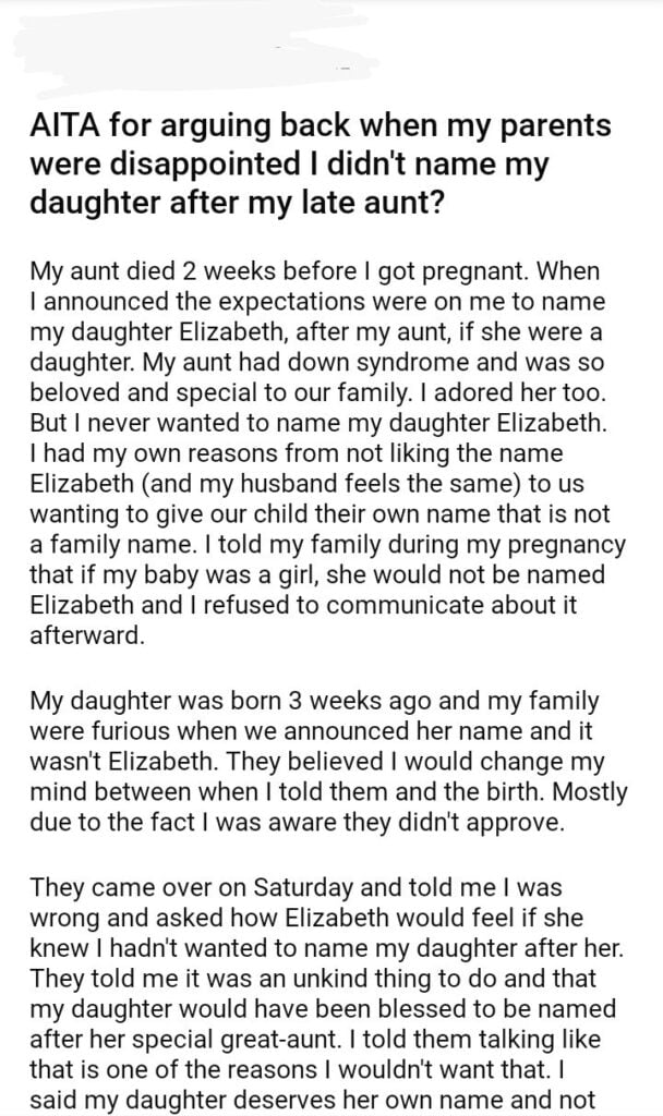 AITA for not naming my daughter after my late aunt?