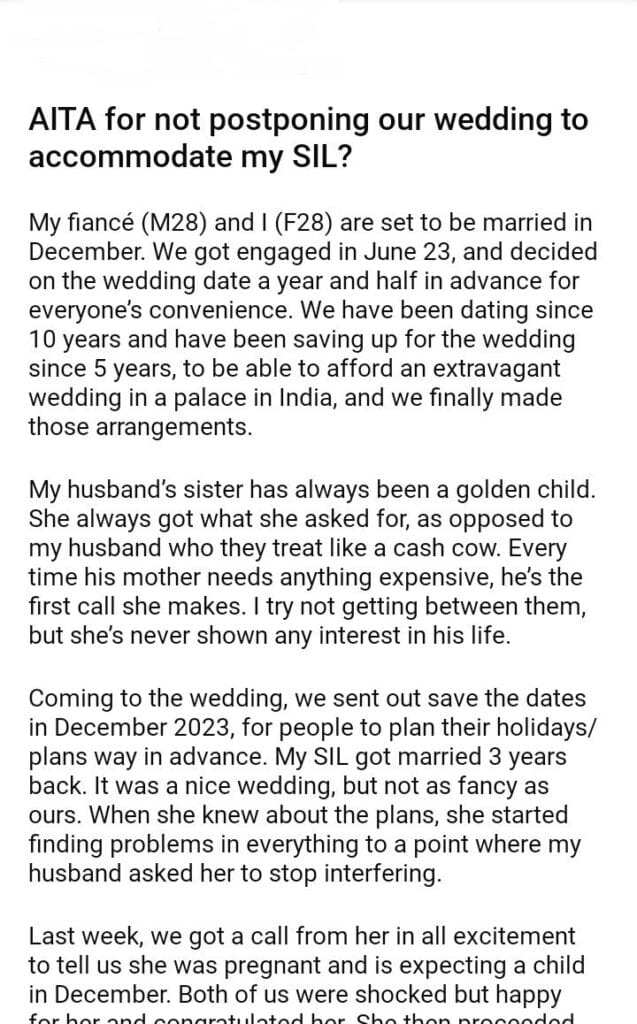 AITA for not postponing our wedding to accommodate my SIL?