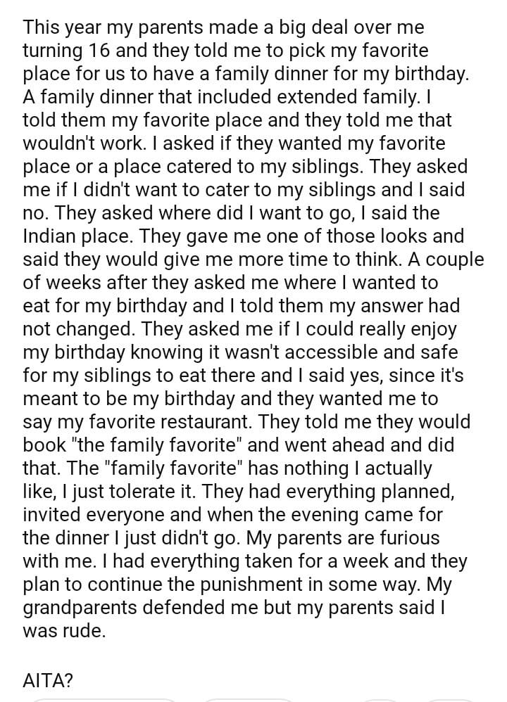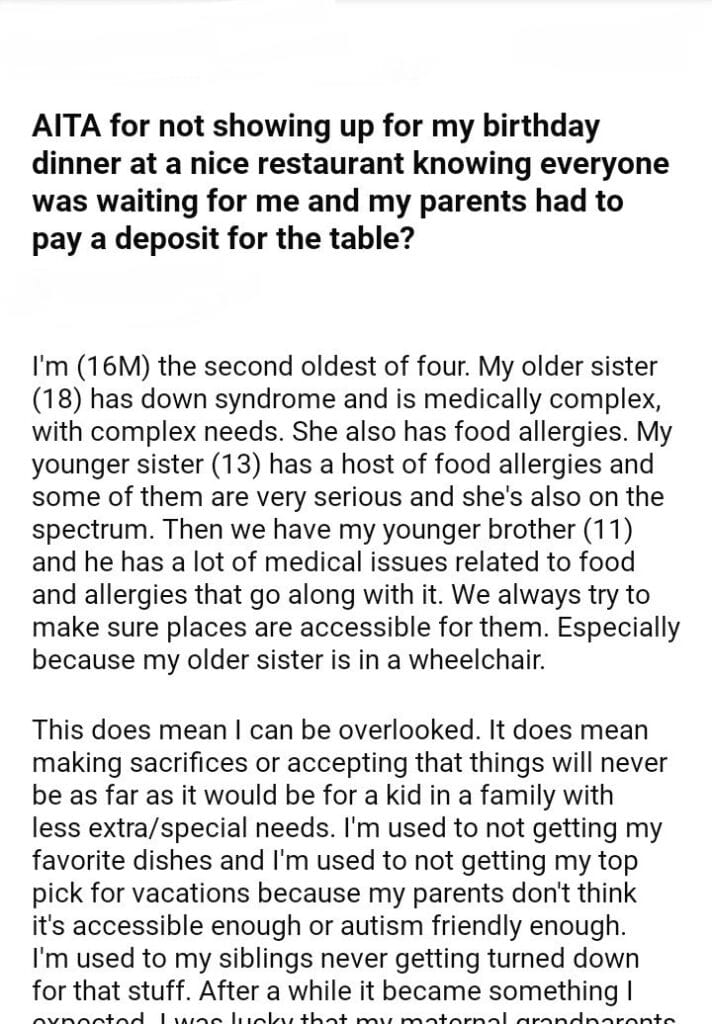 AITA for not showing up for my birthday dinner at a nice restaurant