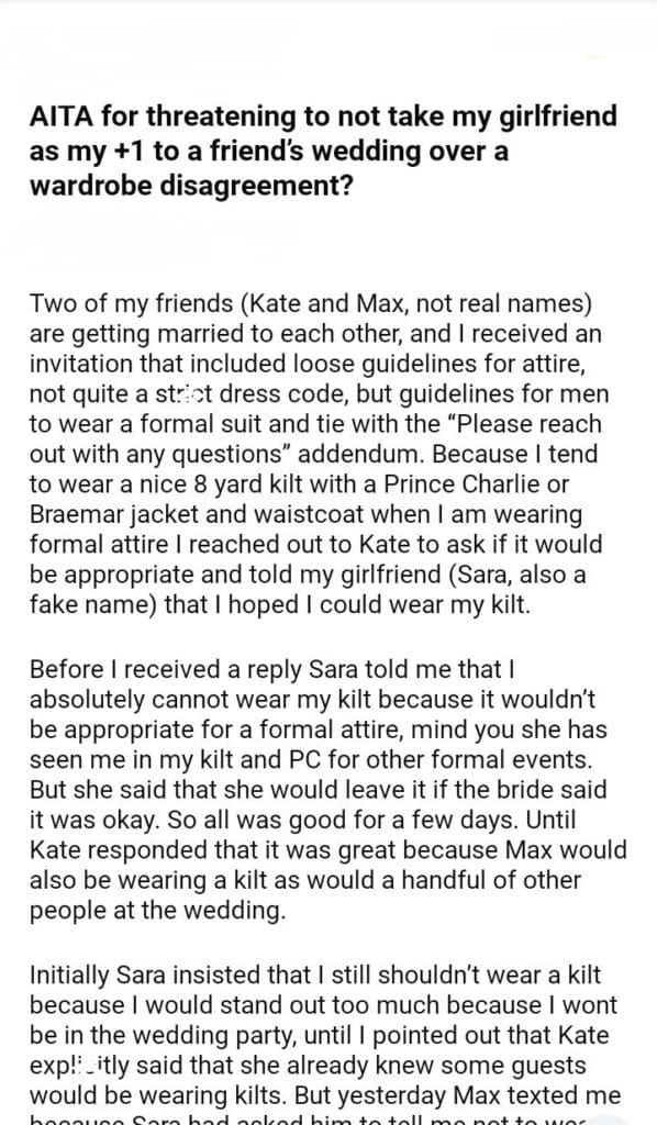 AITA for not taking my girlfriend as my +1 to a friend’s wedding