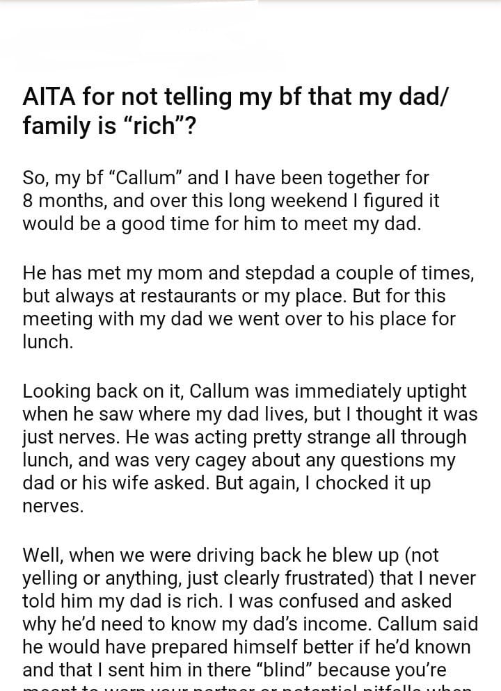 AITA for not telling my bf that my dad/family is “rich”?