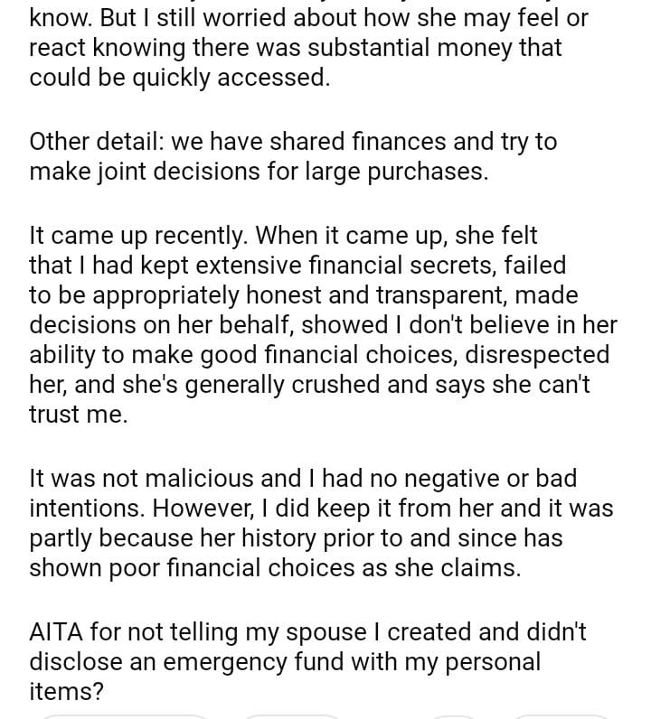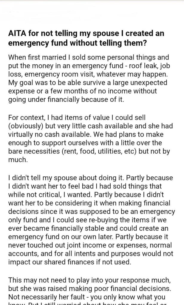 AITA for not telling my spouse I created without telling them?