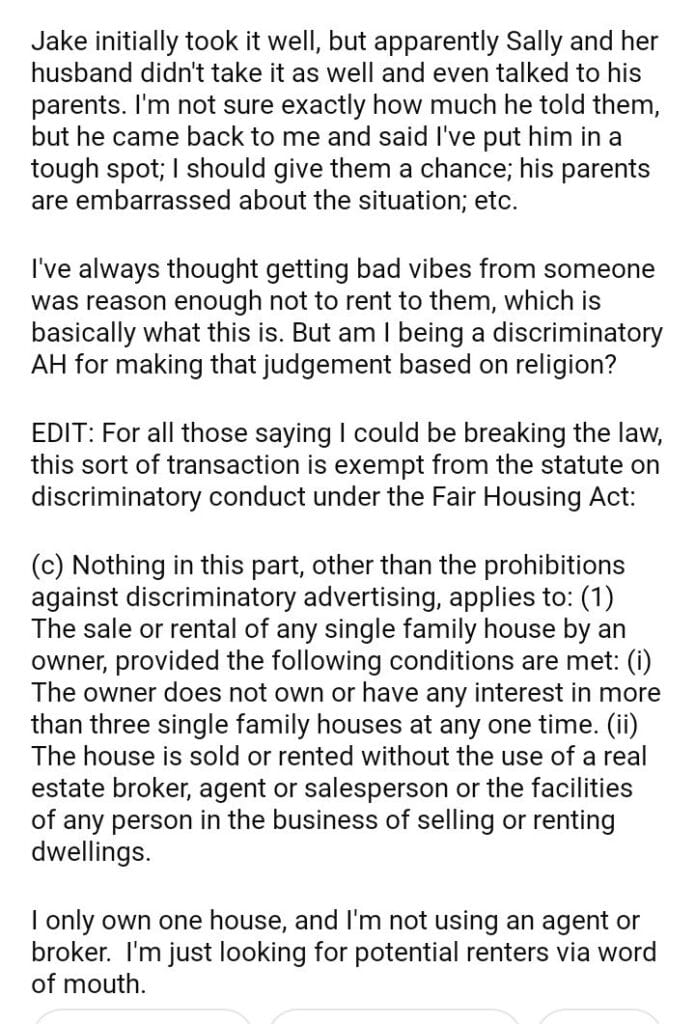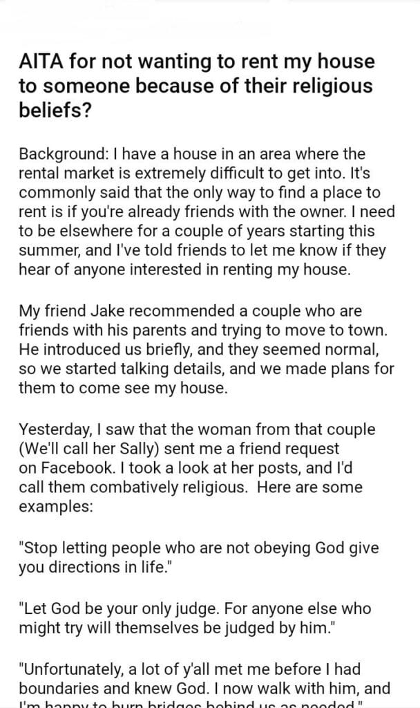 AITA for not wanting to rent my house to someone