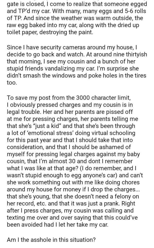 AITA for pressing charges on my cousin?