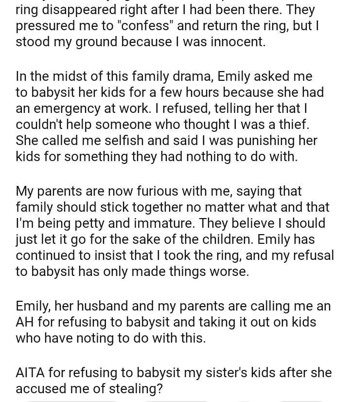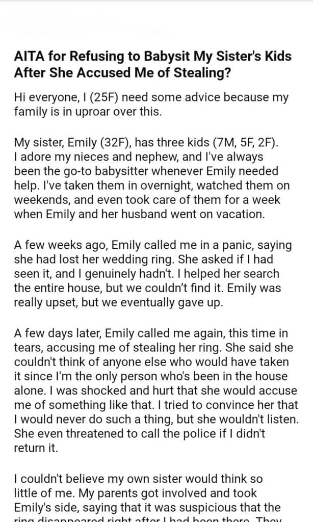 AITA for Refusing to Babysit My Sister’s Kids