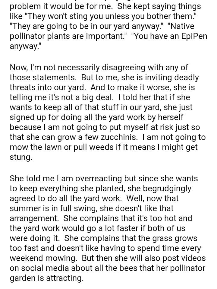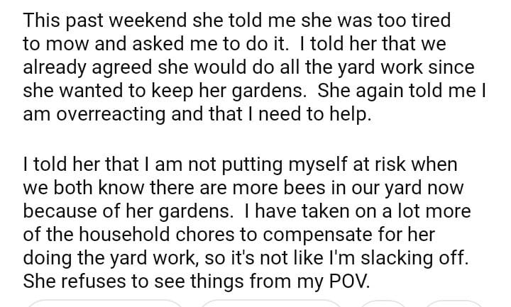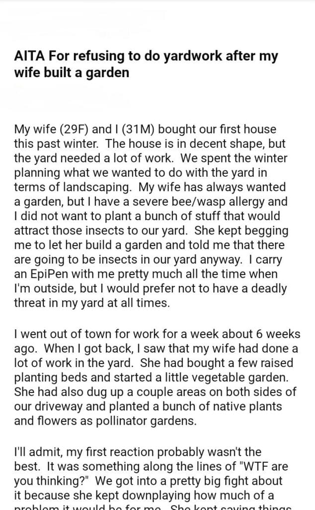 AITA For refusing to do yardwork after my wife built a garden