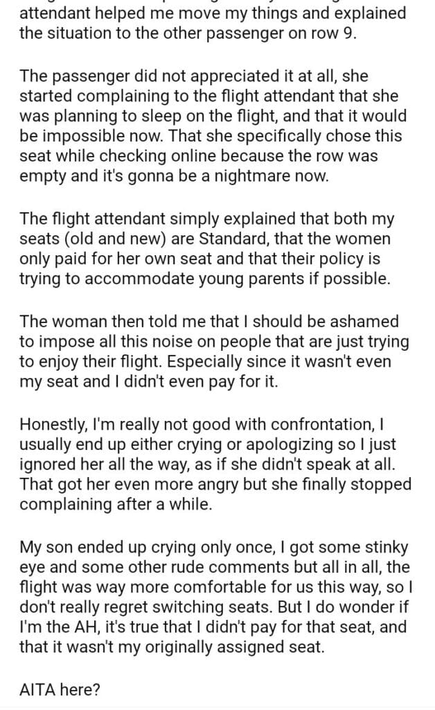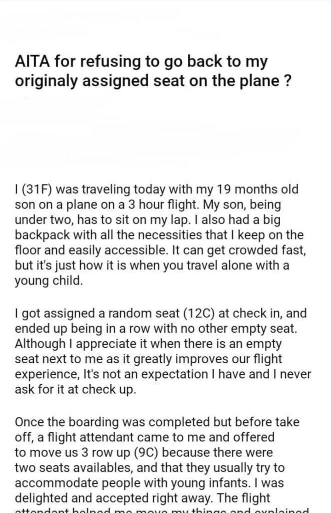AITA for refusing to go back to my originaly assigned seat on the plane ?