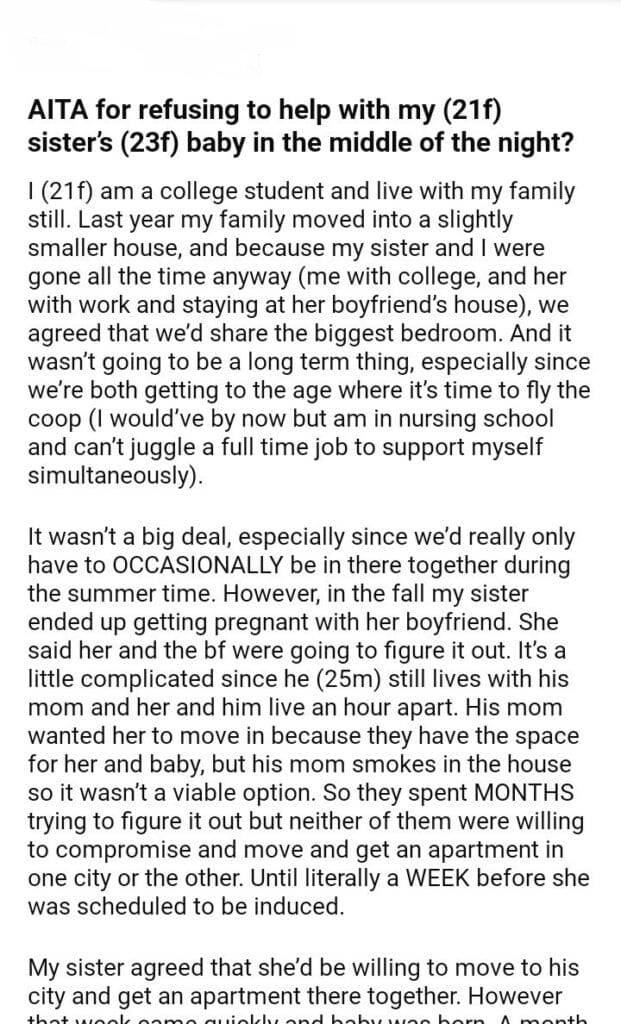 AITA for refusing to help with my (21f) sister’s (23f) baby