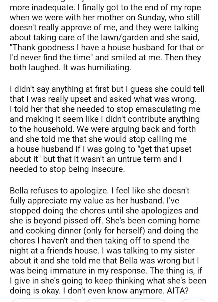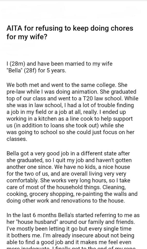 AITA for refusing to keep doing chores for my wife?