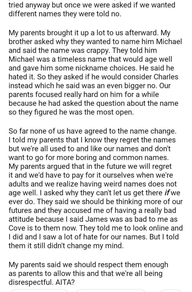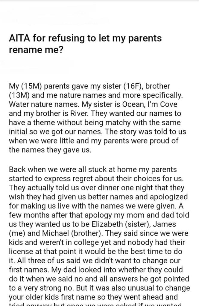 AITA for refusing to let my parents rename me?