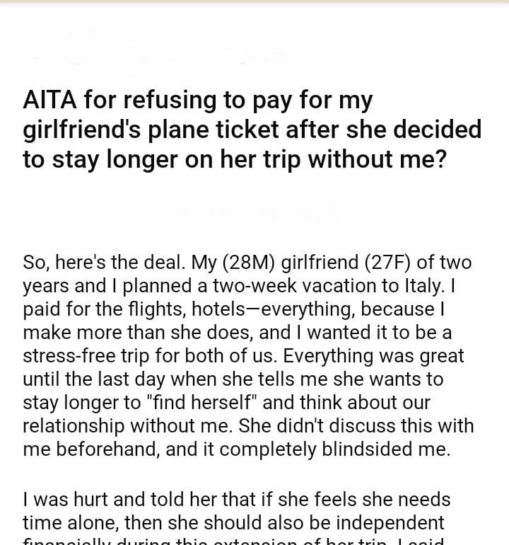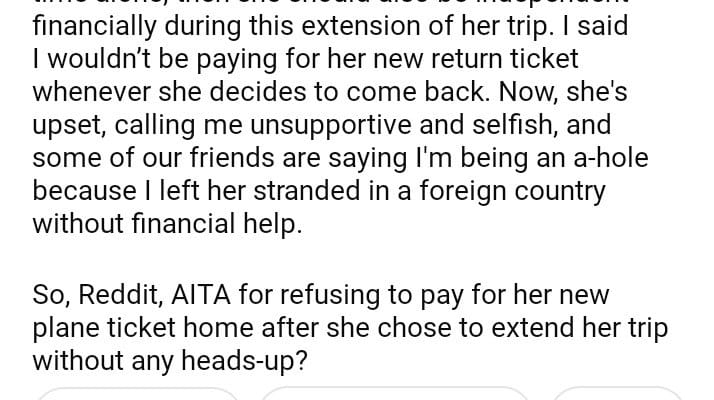 AITA for refusing to pay for my girlfriend’s plane ticket