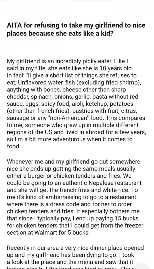 AITA for refusing to take my girlfriend to nice places