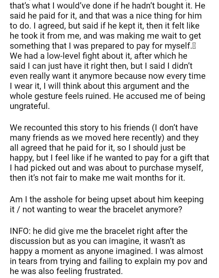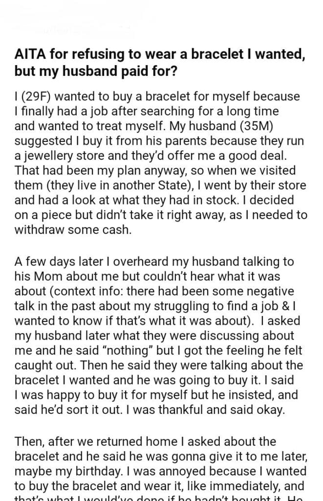 AITA For Refusing To Wear A Bracelet I Wanted
