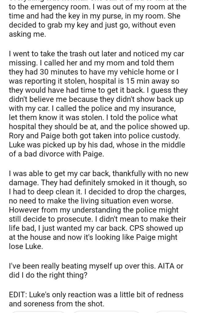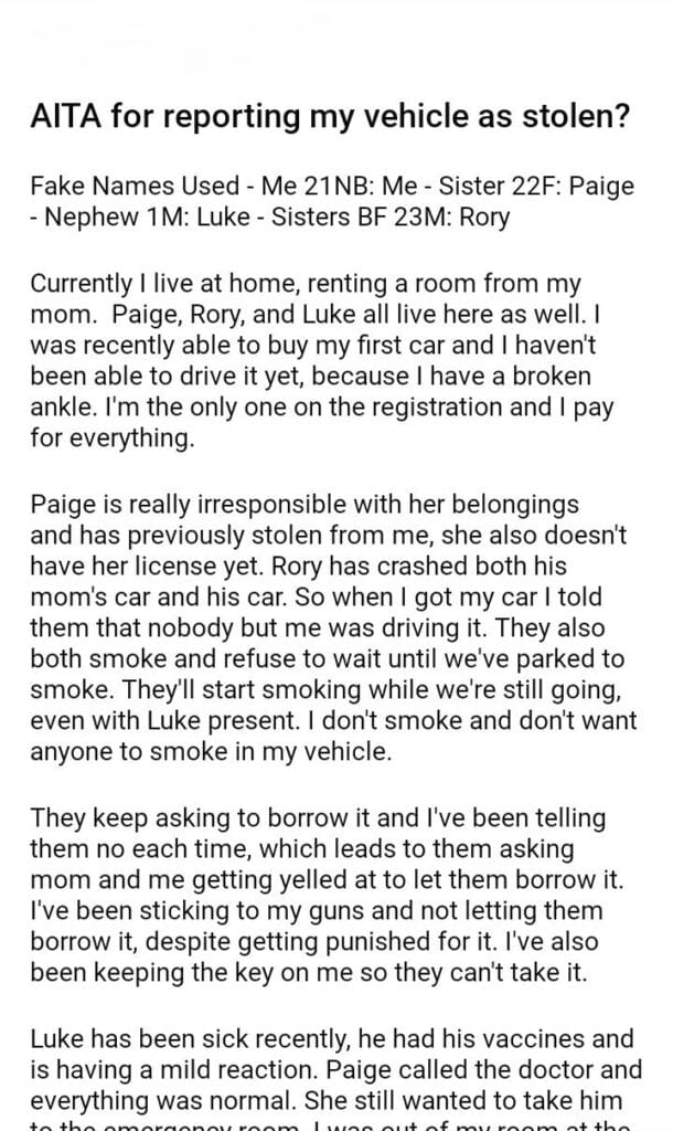 AITA for reporting my vehicle