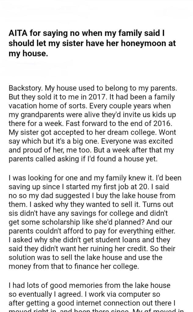 AITA for saying no to my family