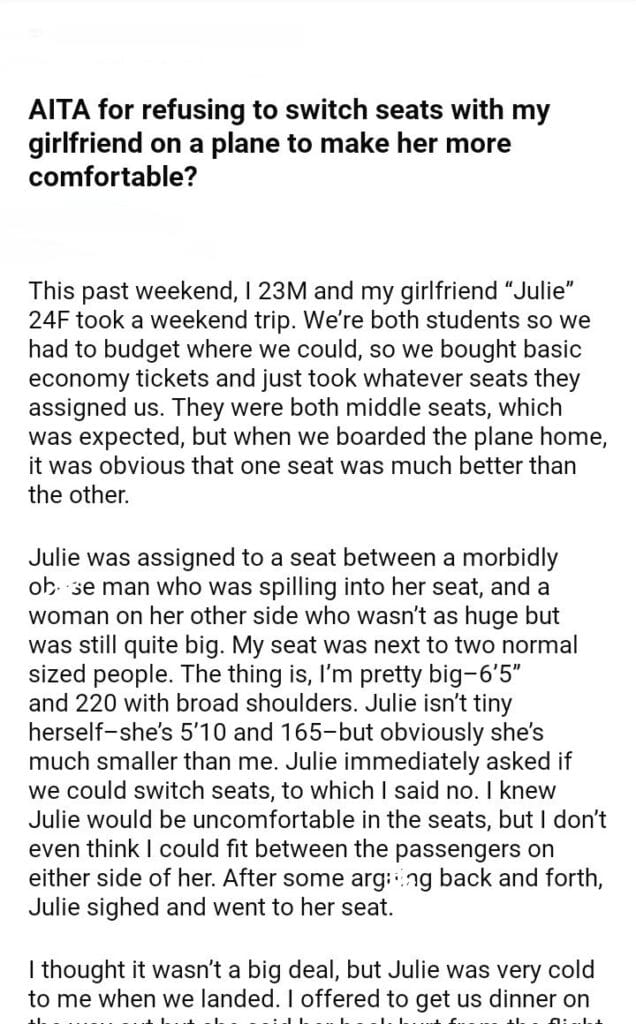 AITA for seats with my girlfriend