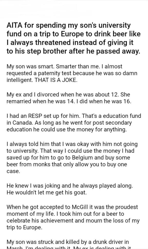 AITA for spending my son’s university fund on a trip to Europe