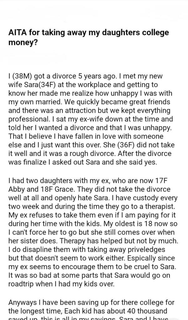 AITA for taking away my daughters college money?
