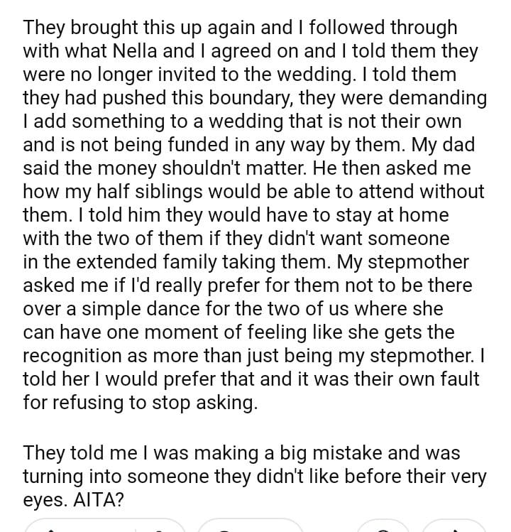 AITA for taking back my dad and stepmother’s wedding invite