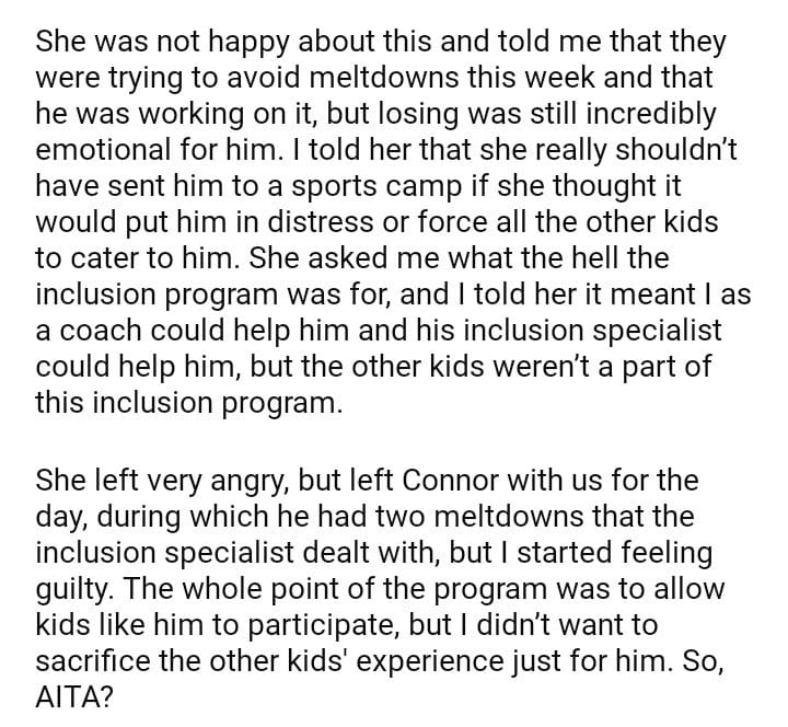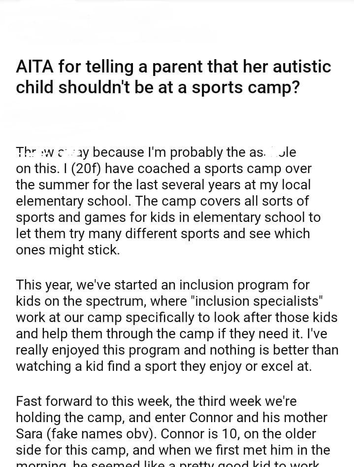 AITA for telling a parent that her child shouldn’t be at a sports camp?