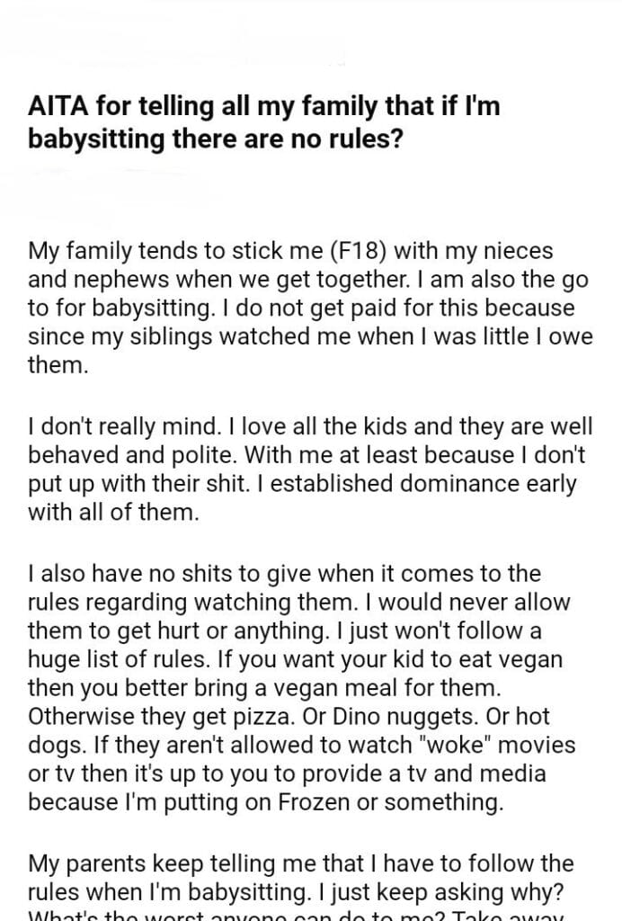 AITA For Telling All My Family That If i’m Babaysitting There Are No Rules