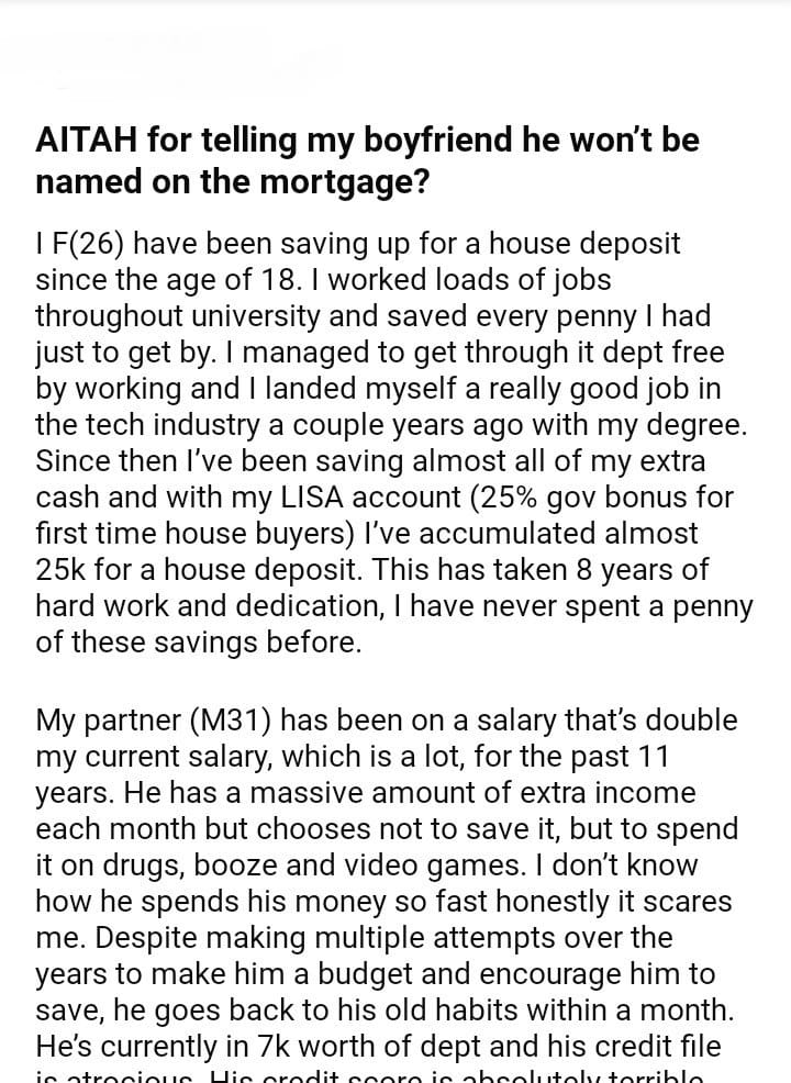 AITA For Telling My Boyfriend He Won’t Be Named On The Mortgage
