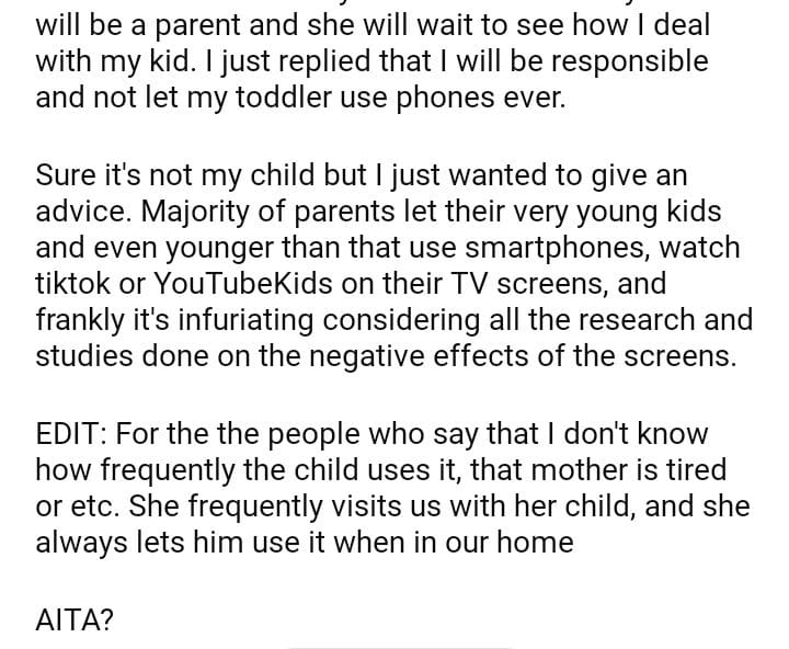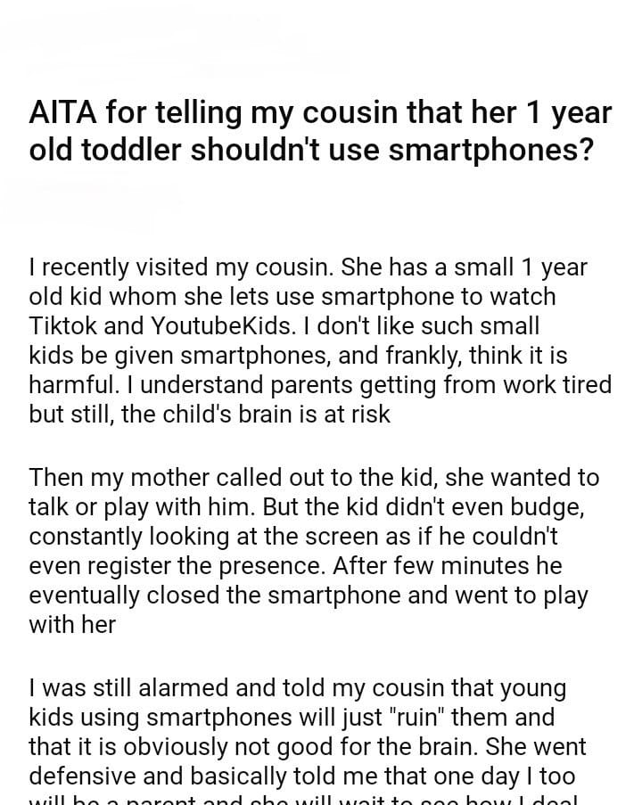 AITA for telling my cousin that her 1 year old toddler shouldn’t use smartphones?