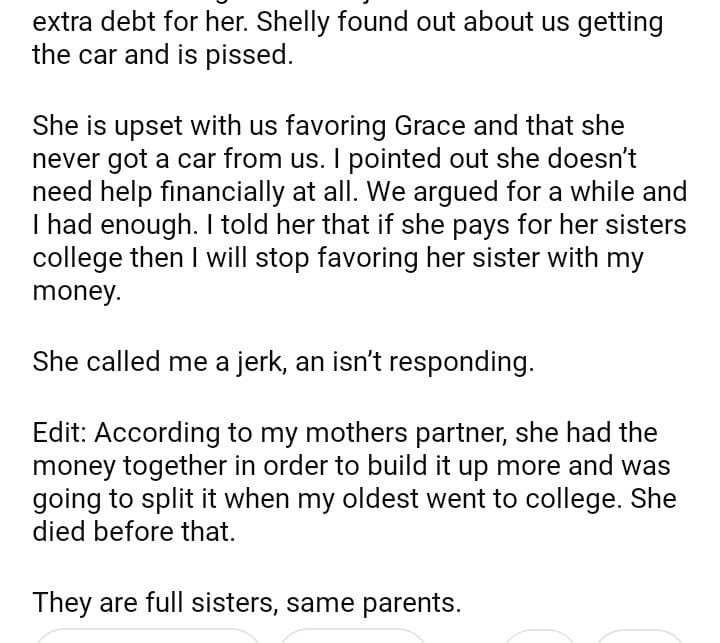 AITA for telling my daughter if she pays for her sisters college