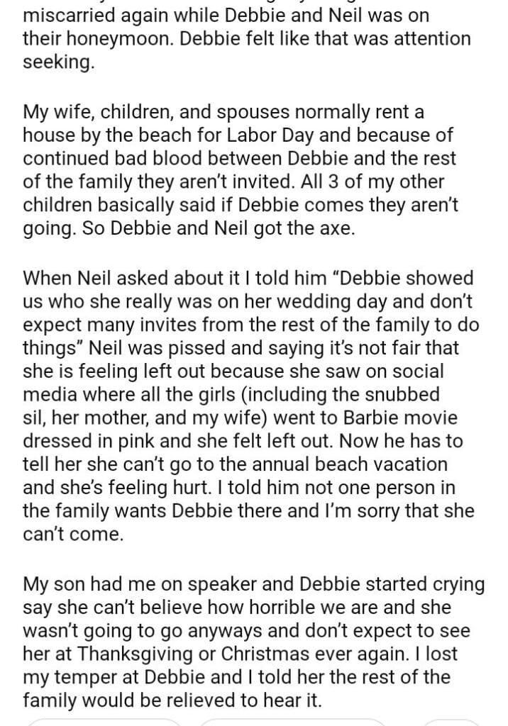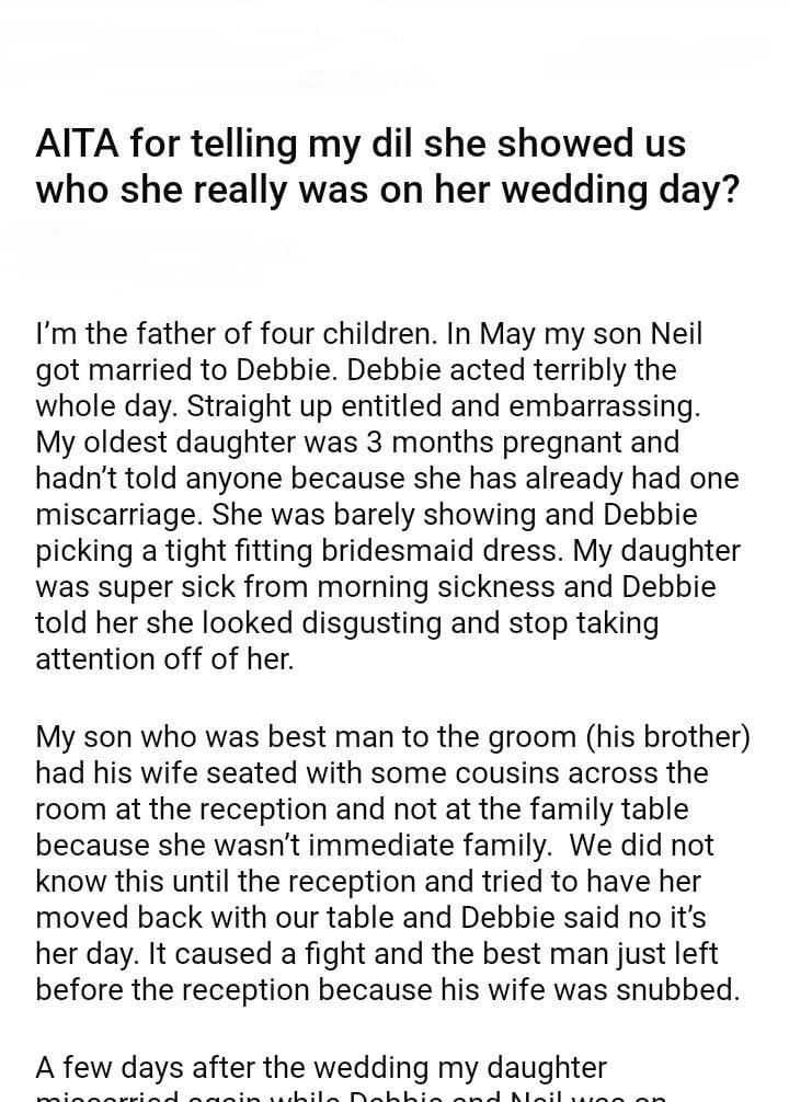 AITA for telling my dil she showed us who she really was on her wedding day?