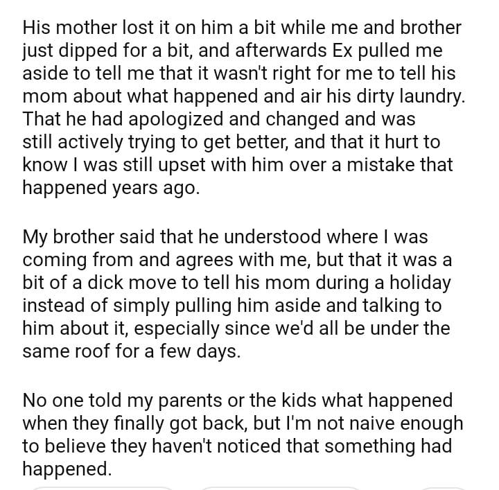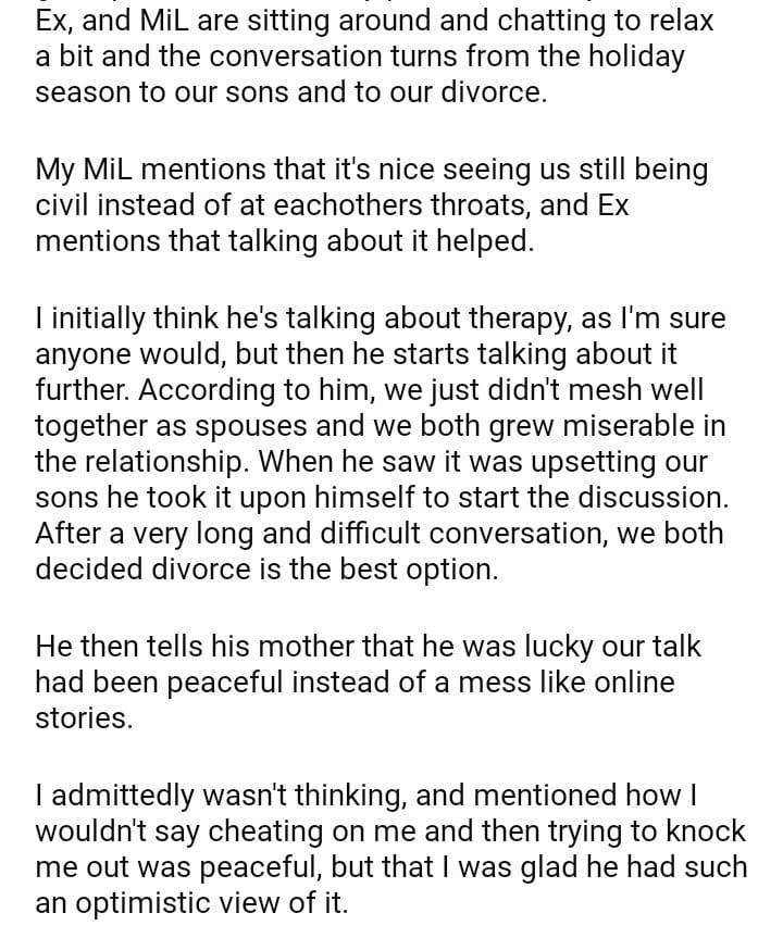 AITA for telling my ex-husband’s mother he was lying about our divorce?