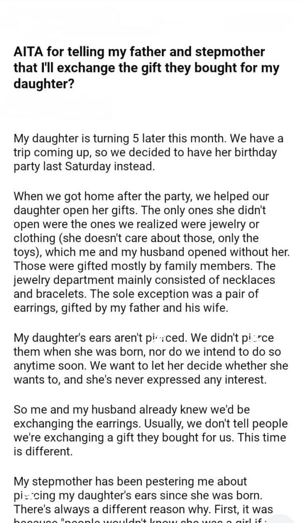 AITA for telling my father and stepmother that I’ll exchange the gift