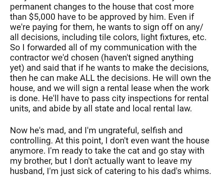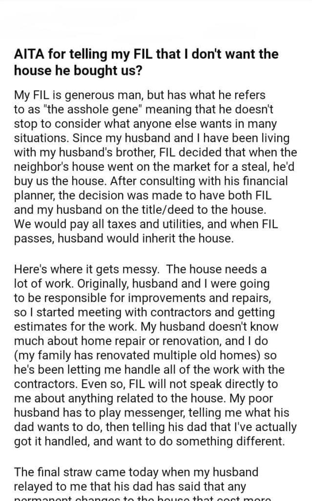 AITA for telling my FIL that I don’t want the house he bought us?