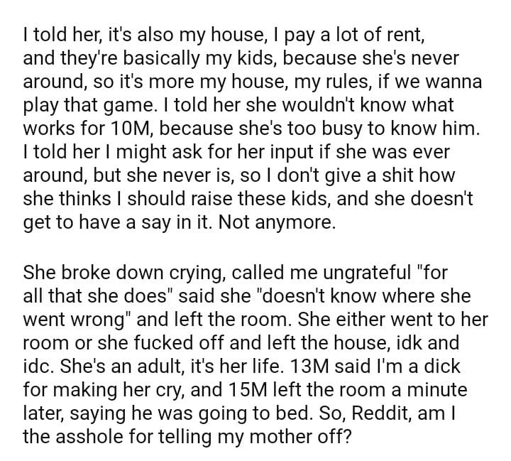 AITA for telling my mom that she’s doesn’t get to make the rules?