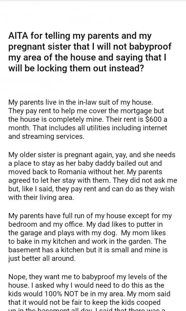 AITA for telling my parents and my pregnant sister that I will not babyproof my area of the house