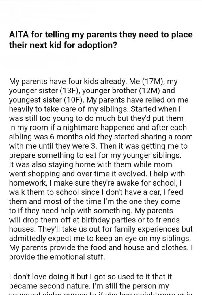 AITA for telling my parents they need to place their next kid