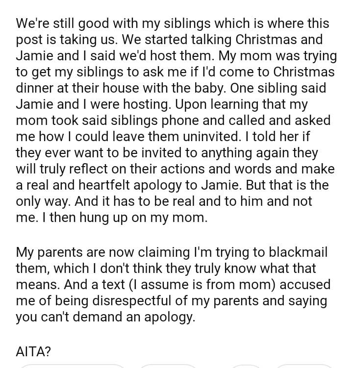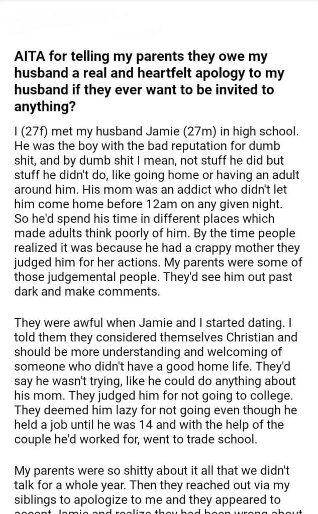 AITA for telling my parents they owe my husband